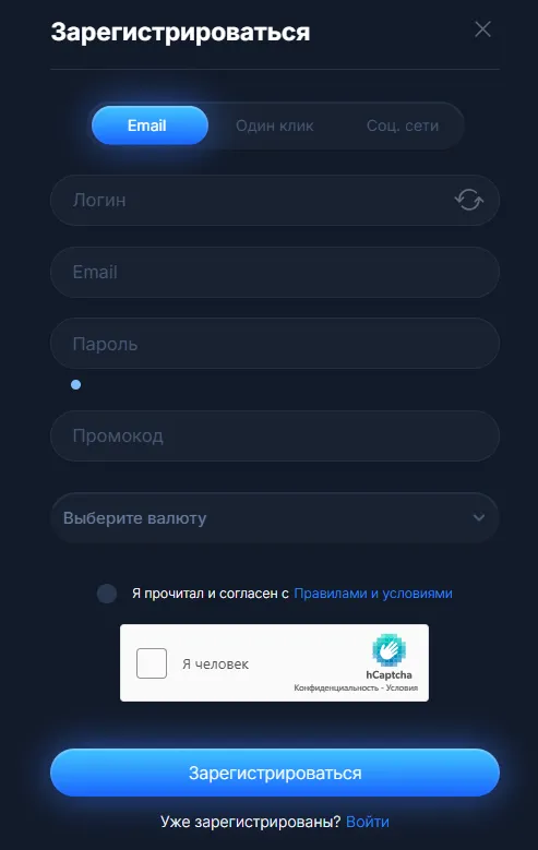 Если еще нет аккаунта, можно зарегистрироваться прямо в приложении — процесс такой же простой, как и на сайте Водка казино.