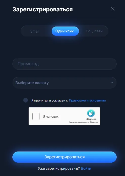 - Нажать яркую кнопку «Регистрация» в верхнем углу